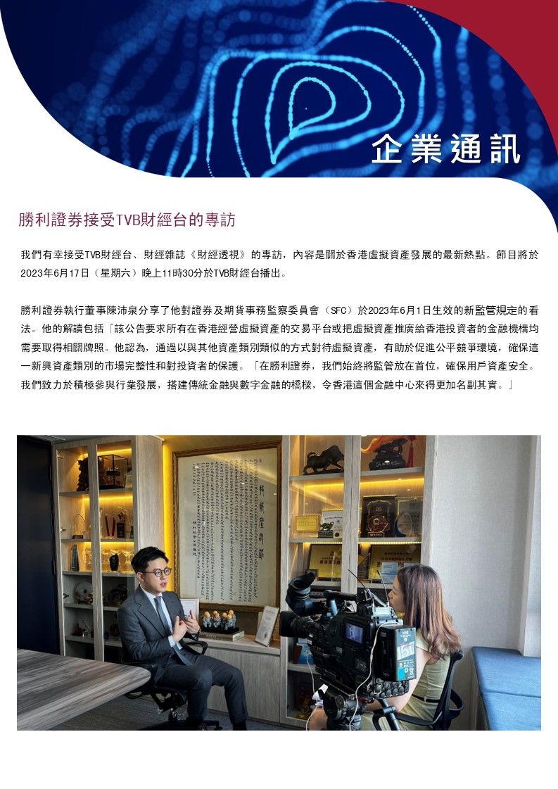 【勝利證券】勝利證券接受TVB財經台的專訪