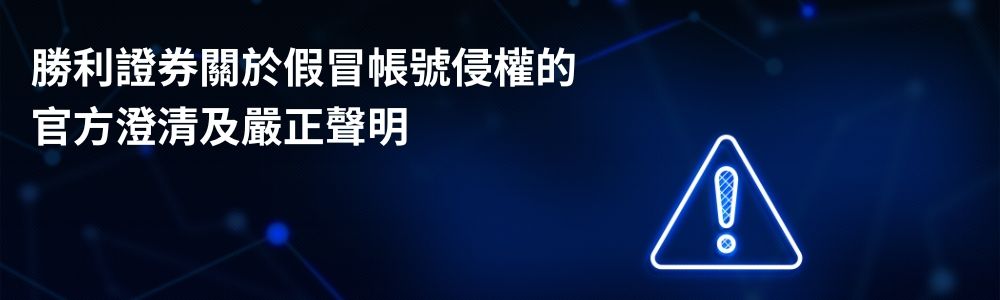 一、「小紅書」上存在多個用戶名為“Theresia” (小紅書號: 5338589254), “Theresiablock” 及 “小红薯690EB46A”)的账号 以及名為聊天群組“业务咨询群”的帳號 及「Telegram」“勝利證券” , “大白課堂總群” , “大白課堂”以及“為您而開勝利之門” 的帳號,以上帳號並非本公司官方認可帳號,其所發布的所有內容、言論及行為均與本公司毫無關聯,不代表本公司的任何立場及觀點。