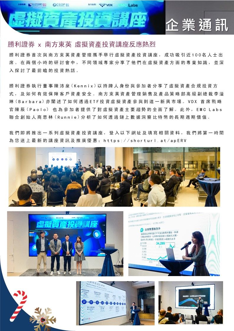 【勝利證券】勝利證券 x 南方東英 虛擬資產投資講座反應熱烈